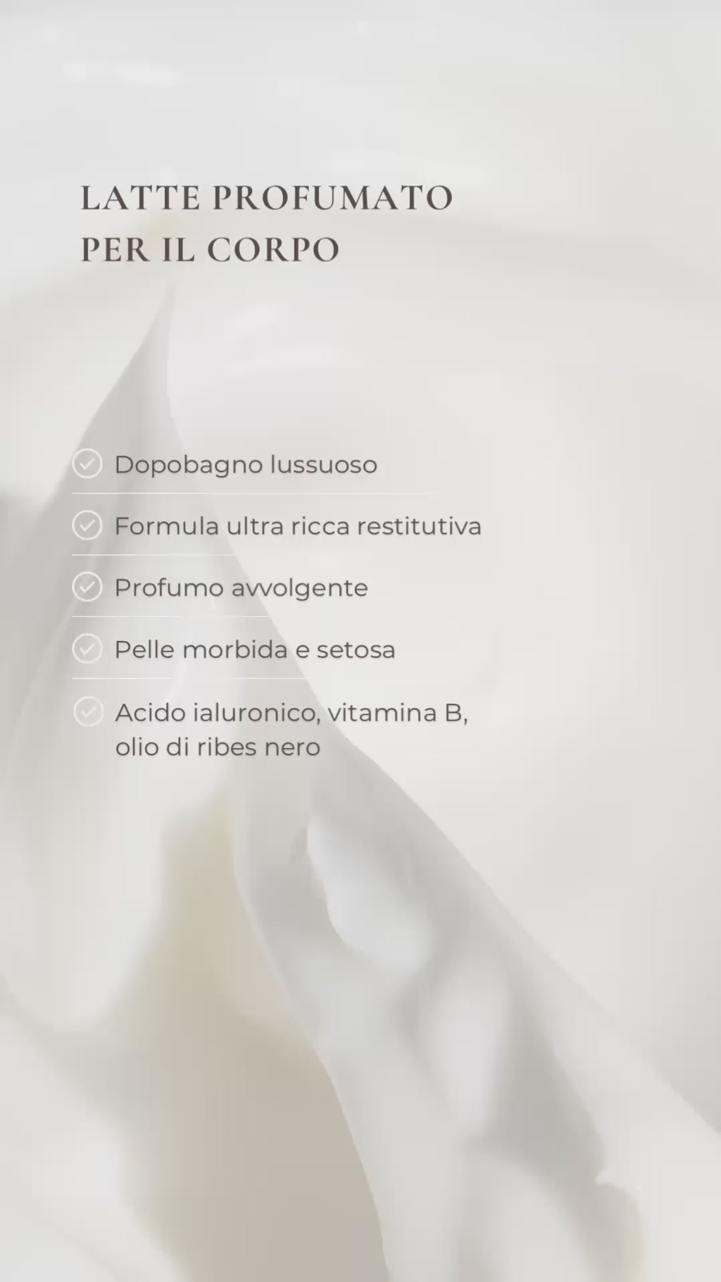 Un rituale di per personalità vivaci e magnetiche, che unisce le note di ribes nero, magnolia e tabacco bianco in una EAU DE PARFUM di nicchia, abbinata al latte corpo con formula intensamente nutriente per la pelle.